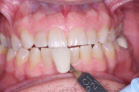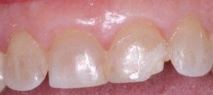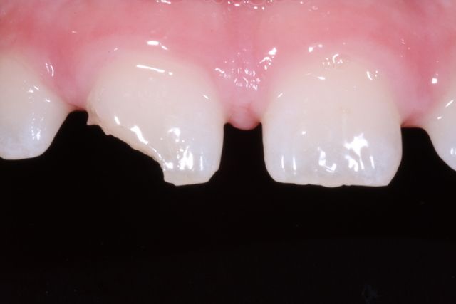 Broken Left Central (After) This was restored in one visit with tooth colored filling.